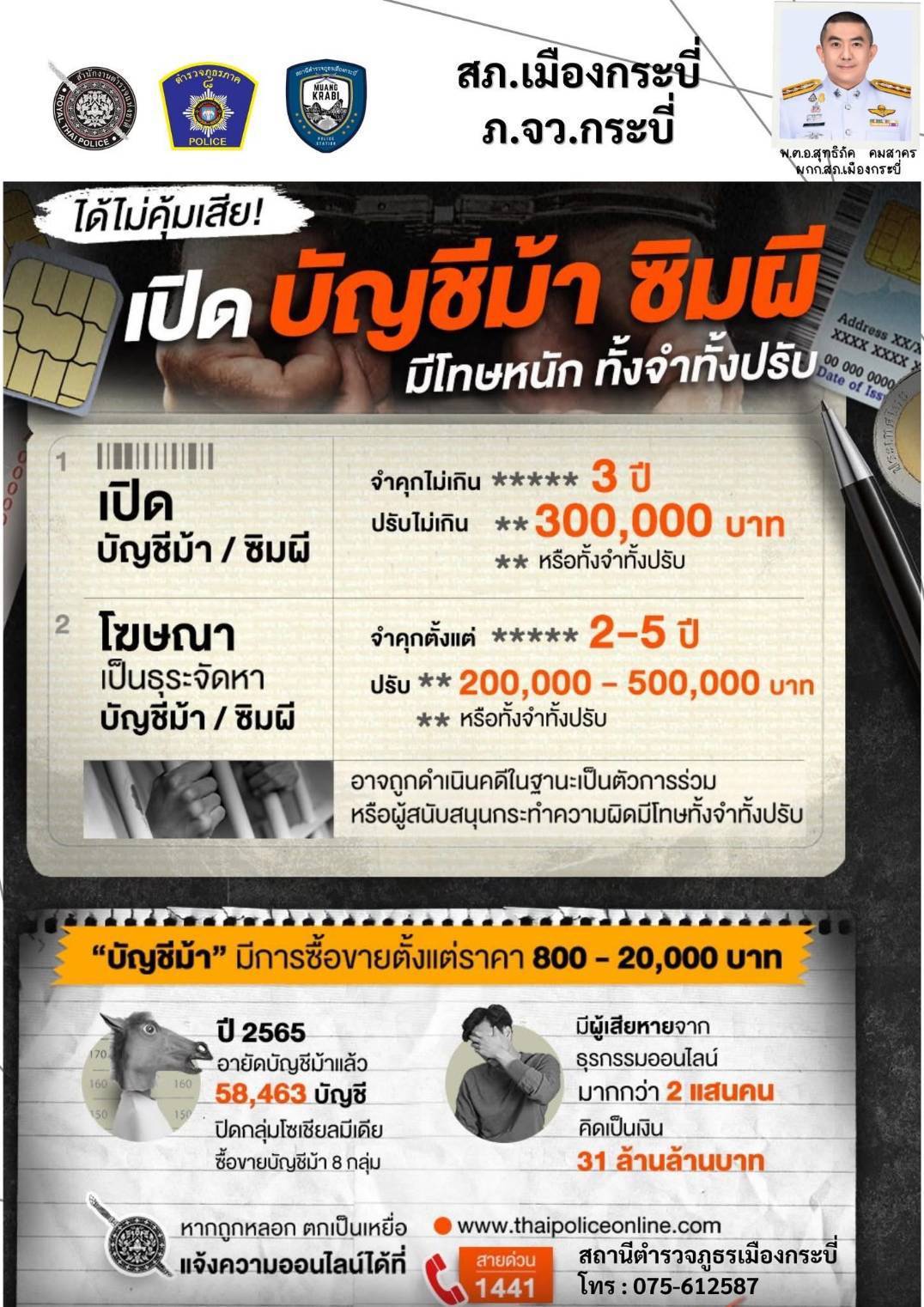 ภายใต้การอำนวยการของ พ.ต.อ.สุทธิภัค คมสาครผกก.สภ.เมืองกระบี่ พ.ต.ท.ฉัตรชัย ชูหนู รอง ผกก.ป.สภ.เมือง