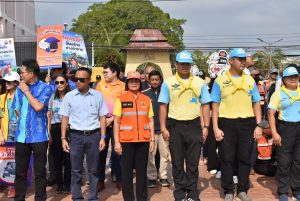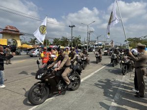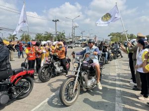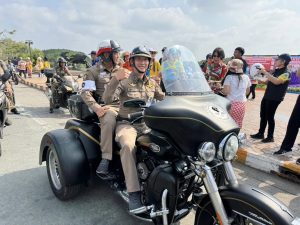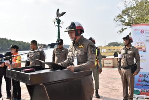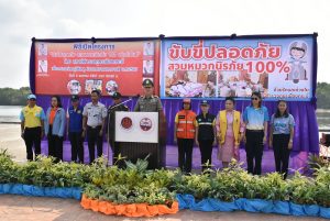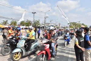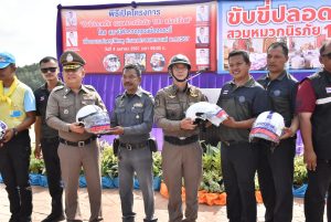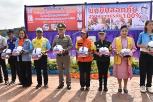 โดยกิจกรรมในวันนี้ มีการส่งมอบหมวกนิรภัยให้กับกลุ่มมอเตอร์ไซด์รับจ้างและประชาชนผู้ใช้รถจักรยานยนต์ในเขตพื้นที่เทศบาลเมืองกระบี่ รวมจำนวน 300 ใบ ที่ผ่านพิธีการปลุกเสกและลงอักขระจากวัดมหาธาตุวชิรมงคล หรือวัดบางโทง เพื่อความเป็นสิริมงคลและความปลอดภัยแก่ผู้สวมใส่ หลังจากนั้นได้ร่วมกันปล่อยขบวนรถรณรงค์ขับขี่ปลอดภัยใส่หมวกนิรภัย 100 เปอร์เซ็นต์ เพื่อประชาสัมพันธ์สร้างการรับรู้แก่ประชาชนและนักท่องเที่ยว ให้มีความตระหนักรู้ ในการสวมหมวกนิรภัย เพื่อความปลอดภัย และเป็นการสร้างความเชื่อมั่นให้กับนักท่องเที่ยว รับเทศกาลสงกรานต์ที่กำลังจะมาถึงอีกด้วย