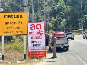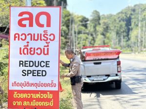 ร่วมกันติดปัาย“ลดความเร็ว” บริเวณทางโค้งอันตราย ถนนกระบี่ -อ่าวนาง ต.ไสไทย อ.เมือง จ.กระบี่