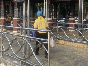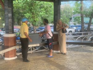 4.การปฏิบัติ >ร่วมอำนวยความสะดวกการจราจร แก่ ชาวบ้านผู้โดยสารที่มากับเรือและลงเรือข้ามฟาก ฝั่งคลองประสงค์ ช่วยยกสิ่งของให้แก่คนสูงอายุ ผู้หญิงและเด็ก/ เเนะนำการปฏิบัติตัว เพื่อป้องกันการติดเชื้อโควิด 19