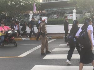 4.การปฏิบัติ >ร่วมอำนวยความสะดวกการจราจร แก่นักเรียนและผู้ปกครองที่มาส่งนักเรียนบริเวณหน้าโรงเรียนอำมาตย์พานิชนุกูล และโรงเรียนอิศรานุสรณ์ / เเนะนำการปฏิบัติตัว เพื่อป้องกันการติดเชื้อโควิด 19