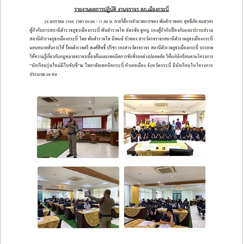 รายงานผลการปฏิบัติงานจราจรเดือน มกราคม 2568