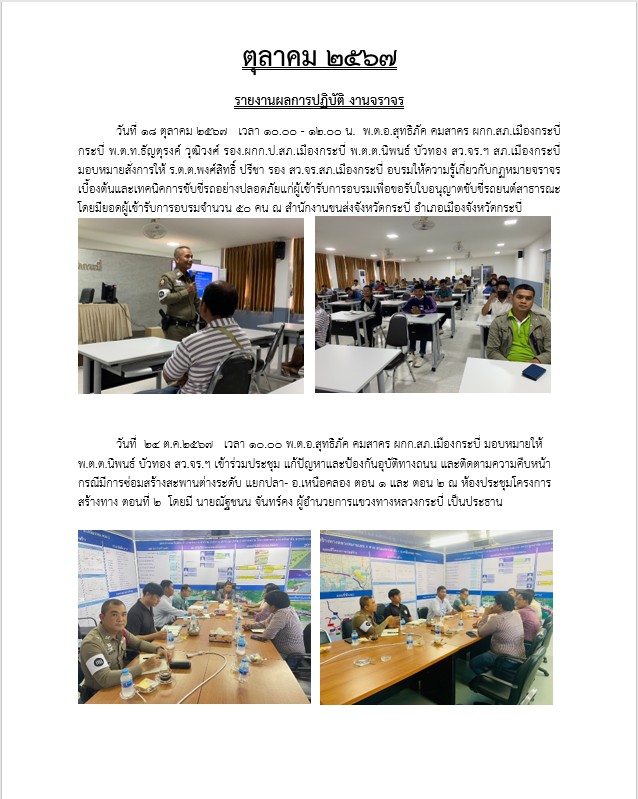 รายงานผลการปฏิบัติงานจราจรเดือน ตุลาคม 2567