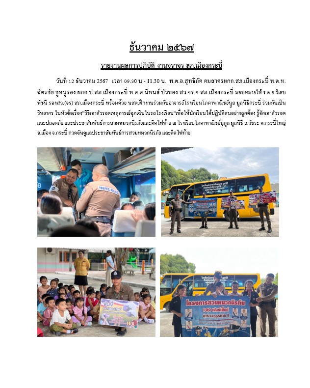รายงานผลการปฏิบัติงานจราจรเดือน ธันวาคม 2567