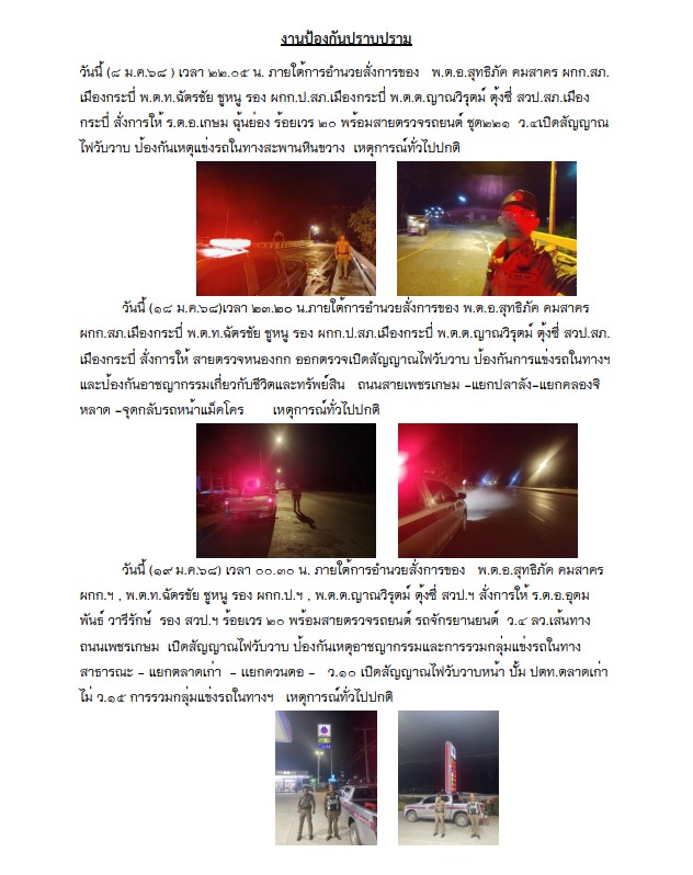 รายงานผลการปฏิบัติงานป้องกันปราบปรามเดือนมกราคม 2568