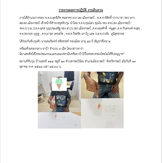 รายงานผลการปฏิบัติ งานสืบสวน เดือน ตุลาคม 2567