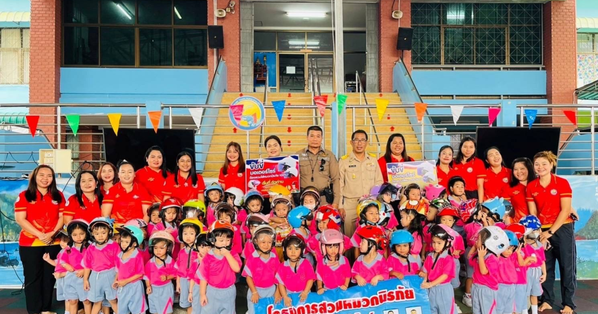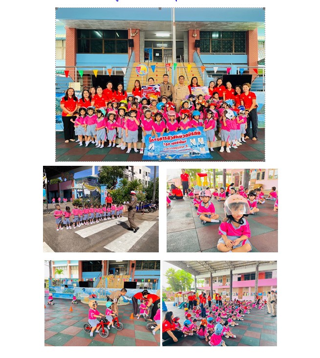 อบรมให้ความรู้เกี่ยวกับกฎหมายจราจรเบื้องต้น ใน”โครงการหนูน้อยพร้อมใจ สวมใส่หมวกนิรภัยในการเดินทางมาโรงเรียน และการข้ามทางม้าลายอย่างปลอดภัย”