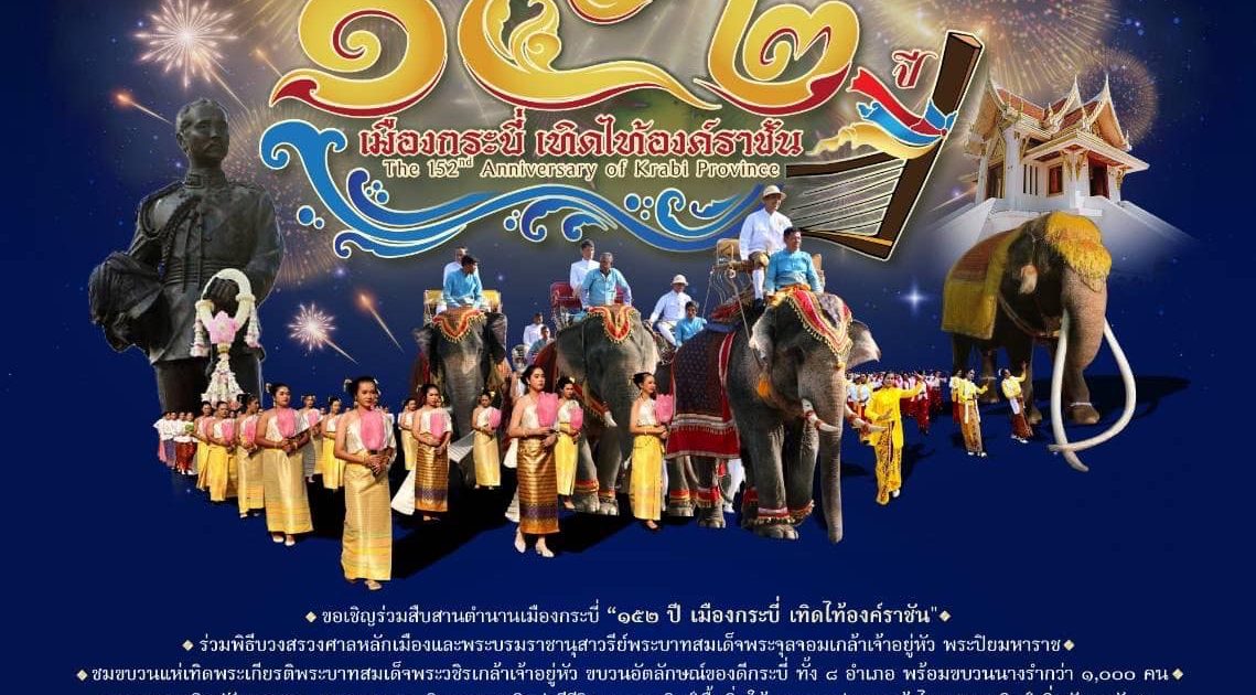 จังหวัดกระบี่ ขอเชิญเที่ยวงานใหญ่แห่งปี “งานเฉลิมฉลองครบรอบ ๑๕๒ ปี เมืองกระบี่ เทิดไท้องค์ราชัน” ในโอกาสที่จังหวัดกระบี่ครบรอบ ๑๕๒ ปี ในปี พ.ศ.๒๕๖๗ กำหนดจัดงานวันที่ ๕-๗ พฤษภาคม ๒๕๖๗ นี้ ณ บริเวณลานประติมากรรมปูดำ ริมเขื่อนหน้าเมืองกระบี่ อำเภอเมือง จังหวัดกระบี่ ![]()