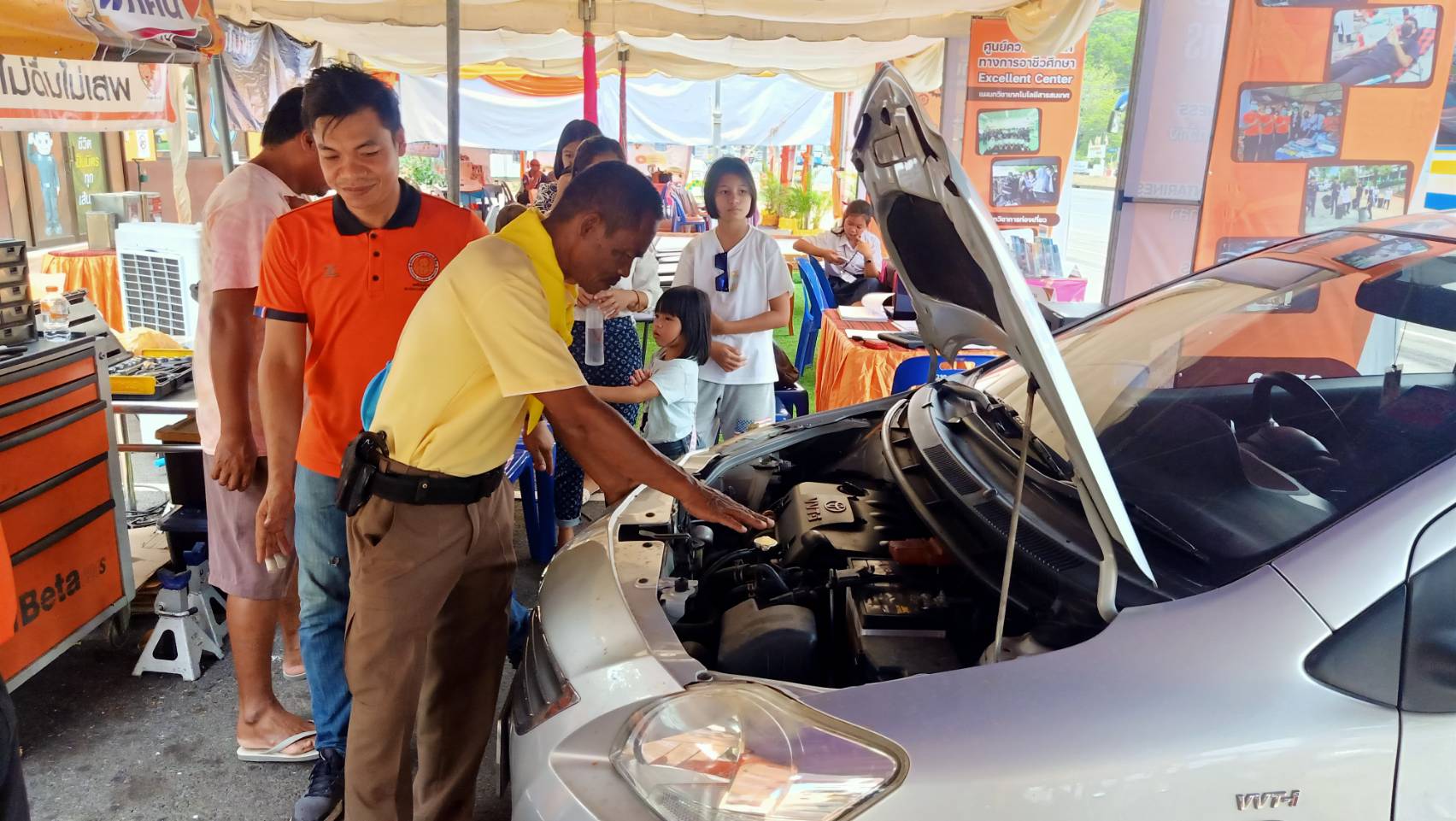เนื่องด้วย สภ.เมืองกระบี่ จัดตั้งจุดบริกาประชาชนเป็นประจำทุกปีจึงได้ขอความร่วมมือกับอาชีวะ ซ่อม ตรวจ