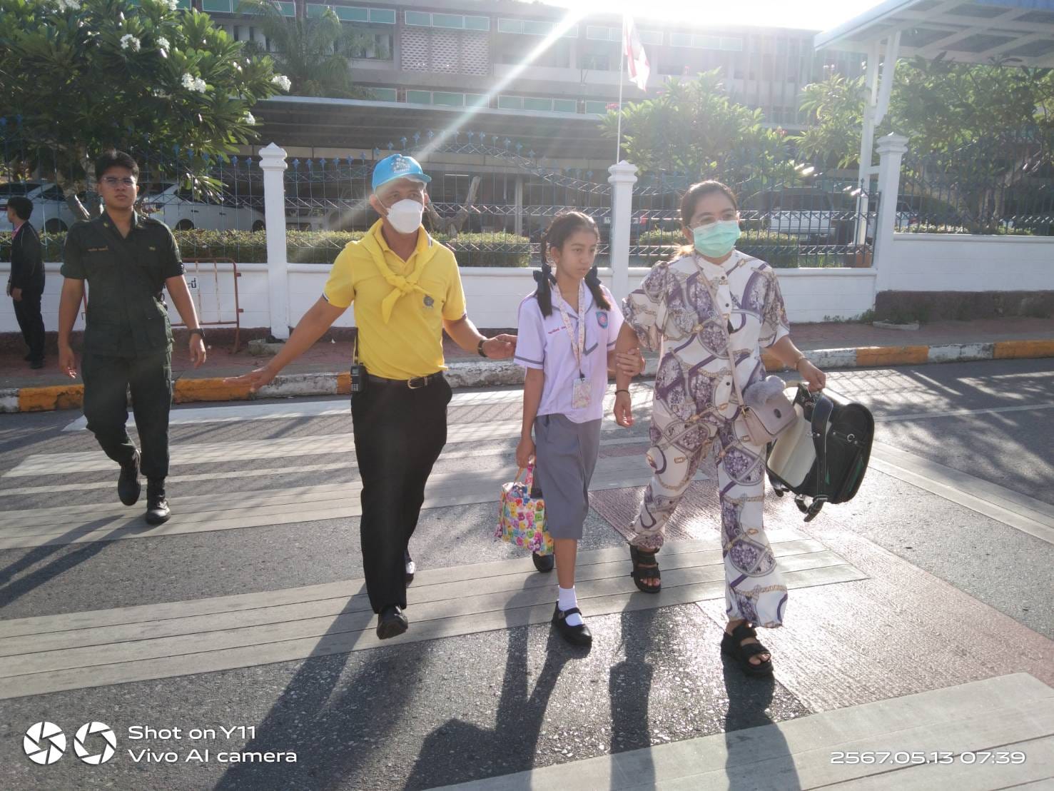 จิตอาสาจราจร อำนวยความสะดวกด้านการจราจรหน้าโรงเรียนในเขตเทศบาลเมืองกระบี่ และทางร่วมทางแยก เรียนผู้บ